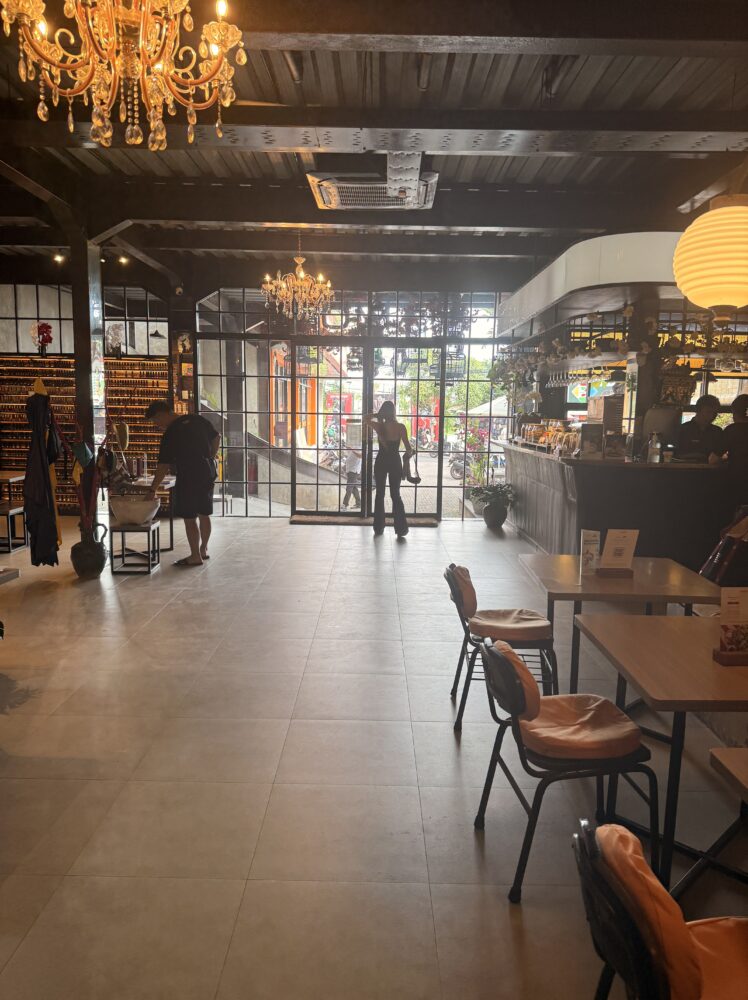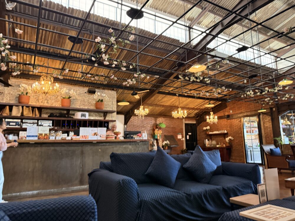 ブーゲンビリアの花が咲き誇るエントランス、レンガ調の壁に吊るされたアンティークのランプ、そしてほのかに漂うアロマの香り――。扉をくぐった瞬間、旅の緊張感がすっとほどけていくのを感じました。店内では、温かい笑顔のスタッフが迎えてくれます。金色のカウンターには「AMO」のロゴが輝き、木のぬくもりと高級感が見事に調和。ラグジュアリーでありながらも、どこか親しみを感じる雰囲気が漂っています。