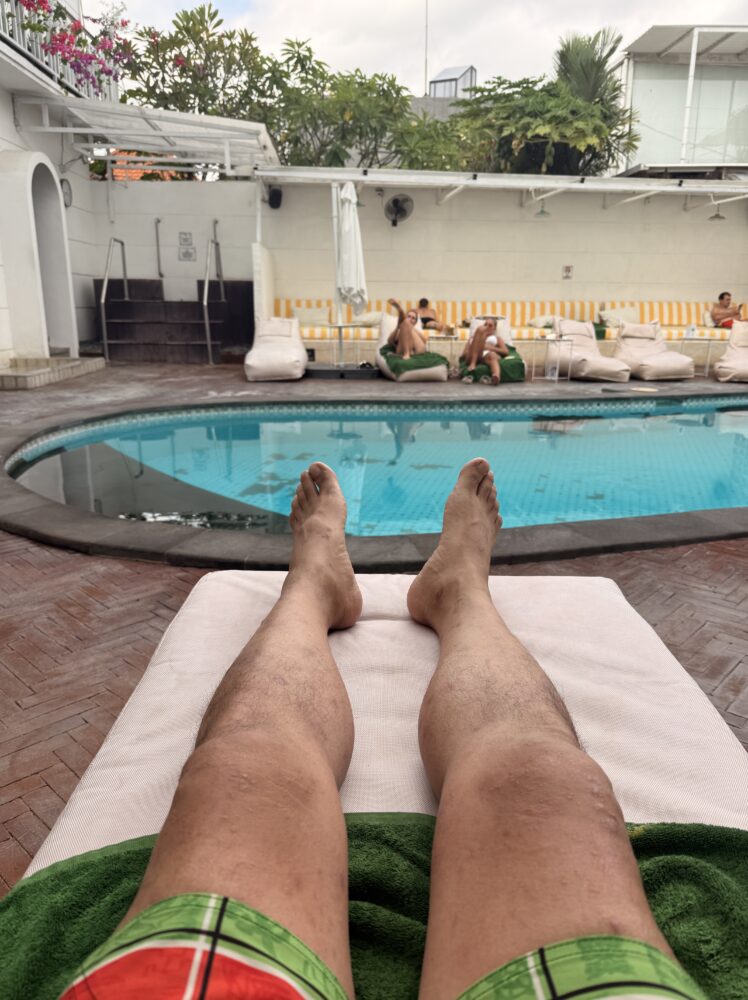 AMO SPAのプールエリアでは、欧米からの旅行者たちが思い思いの時間を過ごしていました。読書をしたり、スムージーを飲んだり、ただ静かに目を閉じて風を感じたり。それぞれのペースで「何もしない時間」を楽しんでいる姿が印象的です。プールサイドのバーでは、軽食やドリンクの注文も可能。