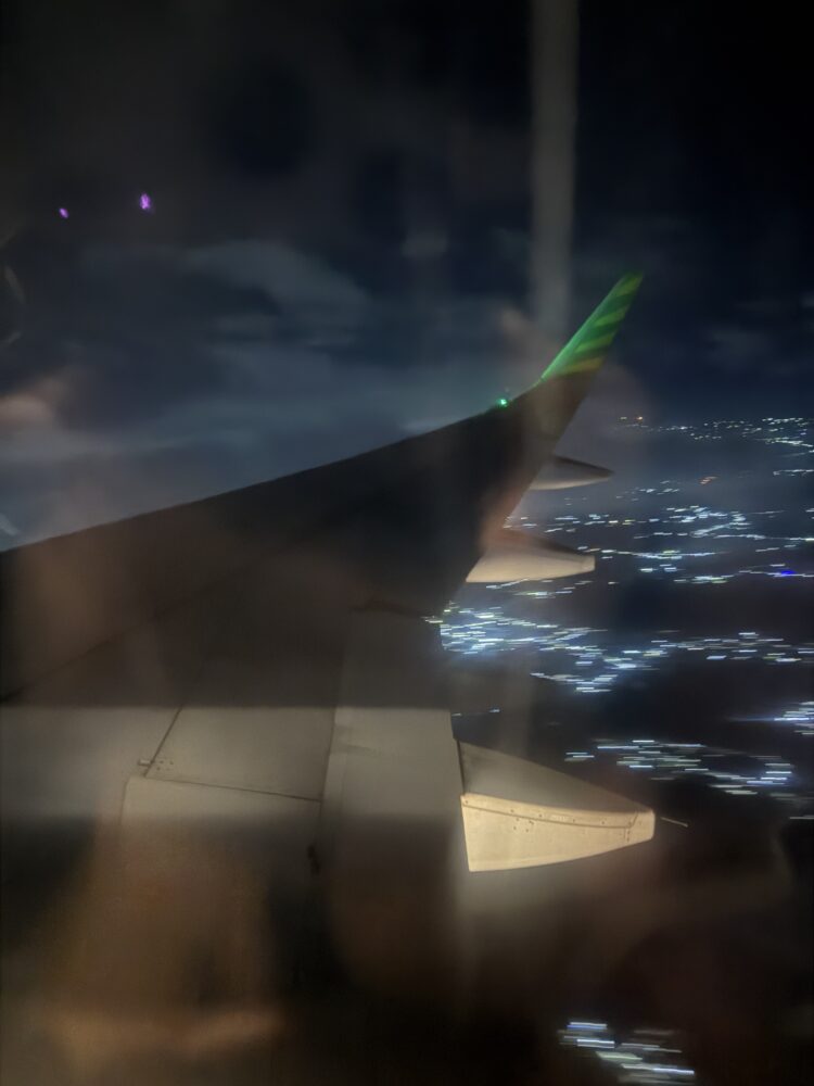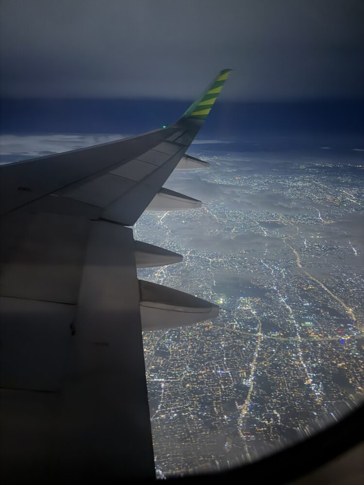 離陸するとすぐに、ジャカルタの街の灯りが広がって見えてきました。