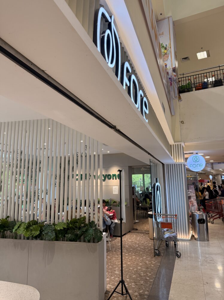 正面入口前にある店の外観は明るく開放的で、入り口には大きなFOREのサインが輝いていました。
