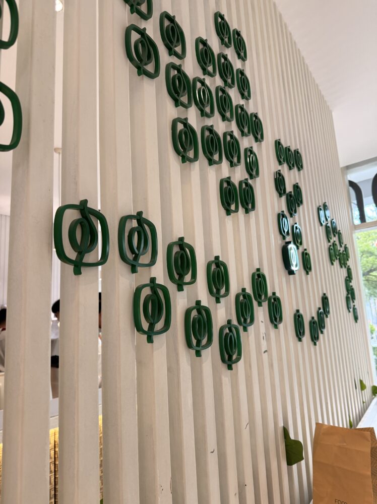 壁面にはFOREの緑のロゴマークがリズミカルに配置され、まるでアートのように目を引きます。