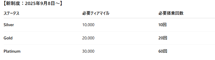 これまでは「ティアマイル(距離)」を貯めないと上級会員になれなかったため、国内線中心の利用者にとってはハードルが高い制度でした。