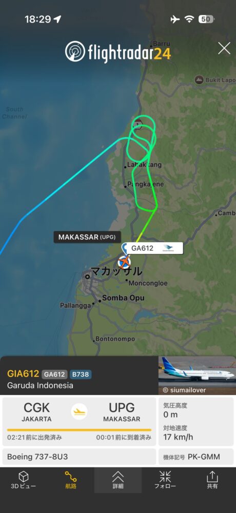 雷雲で着陸できない…マカッサル上空を30分旋回した雨季フライトGA612 ジャカルタ→マカッサル