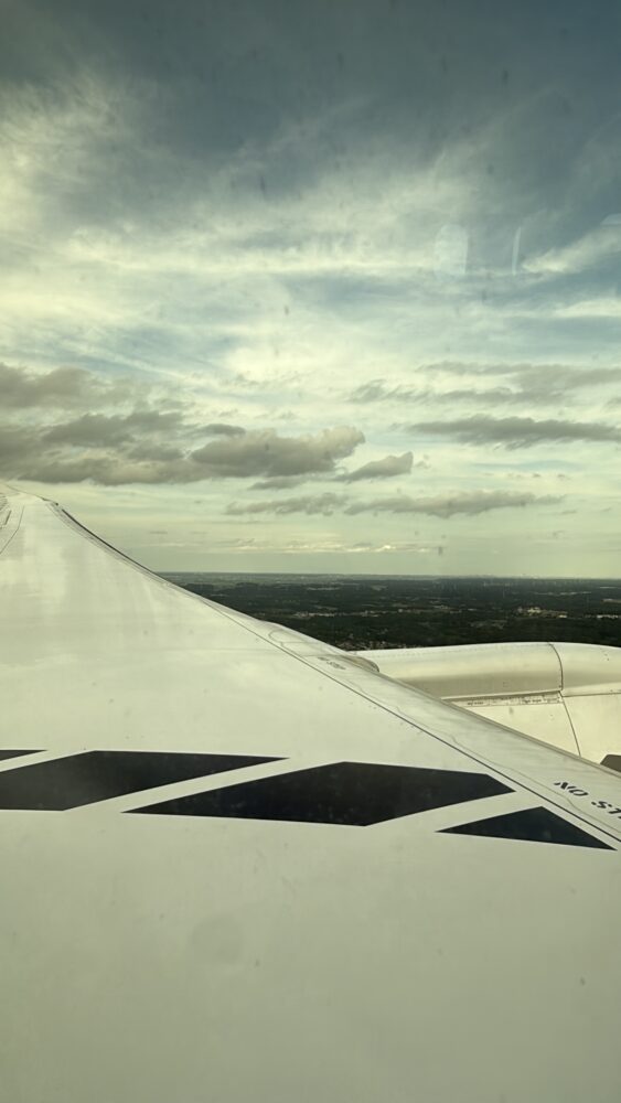 モニターで映画を2本じっくり鑑賞しつつ、合間には窓の外を眺めました。南シナ海を越えたあたりから少しずつ雲が切れ、青い海と島々が見え始めます。やがて日本列島に近づくと、田園風景や街並みが眼下に広がり、帰国の実感が一気に高まる特別な瞬間です。