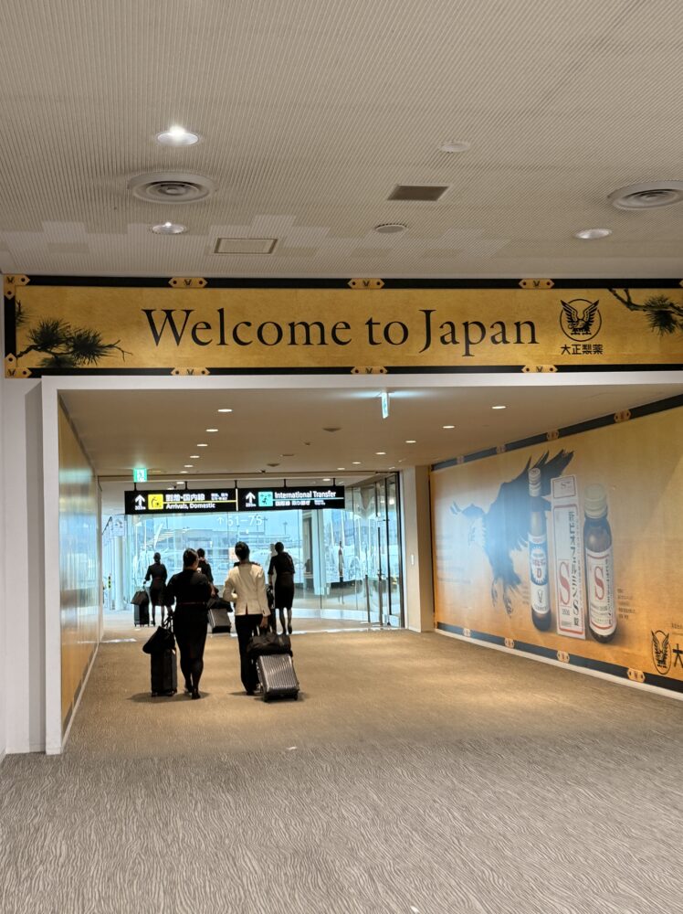 7時間のフライトは驚くほど早く感じられました。機体は定刻通りに成田空港へ到着。到着ゲートを抜けると、目に飛び込んでくる「Welcome to Japan」のサイン。