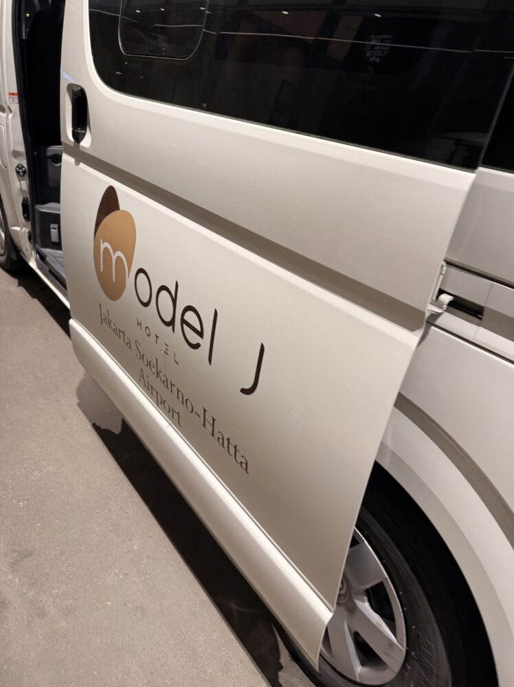 宿泊した「Model J Hotel Jakarta Soekarno-Hatta Airport」での夜は静かで快適。翌朝は3時に起床しました。荷物をまとめて1階へ降りると、フロントにはすでにスタッフが待機していて安心感があります。チェックイン時に予約しておいた無料シャトルバスがちょうど時間通りに到着。暗い中、白い車体にホテルのロゴが入ったバンが目の前に停まっているのを見て安心しました。