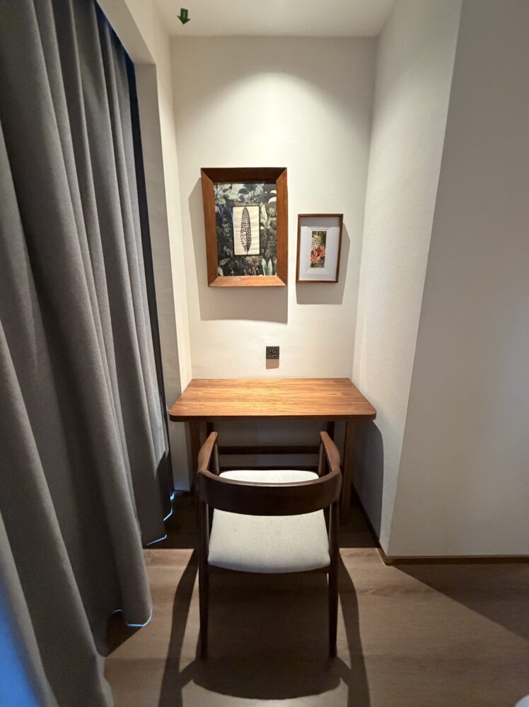 トランジットホテルだと机が小さかったり、作業スペースがほとんどないホテルもありますが、このホテルはその点もしっかり考えられています。