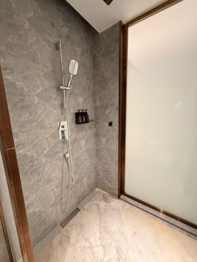 水回りの清掃も行き届いており、タオルやアメニティはしっかり揃っています。ドライヤー、歯ブラシ、ボディソープ、シャンプー、ミネラルウォーター、電気ケトル、冷蔵庫も完備。長時間のフライト後にすぐシャワーを浴びてリフレッシュできるのは嬉しいポイントです。