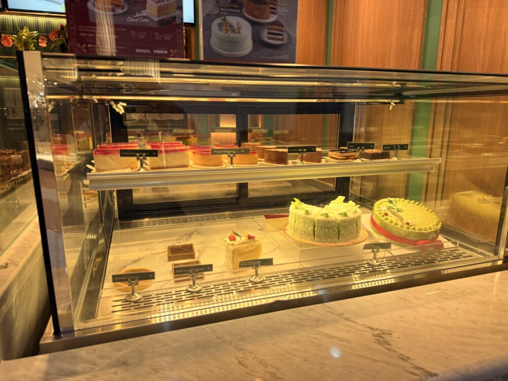 店内に入ると、ショーケースに並べられたスイーツが目に飛び込んできます。抹茶やピスタチオ、チョコレートなど、どのケーキも端正で控えめな美しさがあり、それぞれが静かに存在を主張しています。