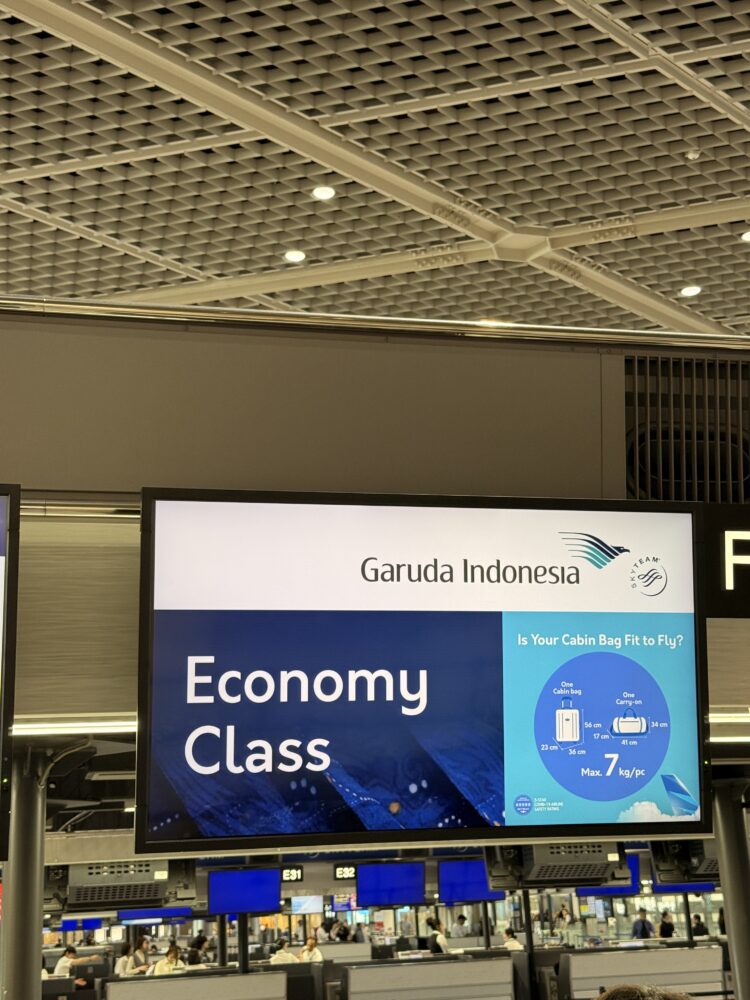 インドネシアに通い続けて、今回で早くも53回目の渡航となりました。今回は久しぶりにガルーダ・インドネシア航空を選択。普段はJALを利用することが多いのですが、目的地がバリ・デンパサールなので、直行便があるガルーダはやはり便利です。成田空港第一ターミナルの出発ロビーに足を踏み入れた瞬間から、少し特別な気持ちがこみ上げてきました。