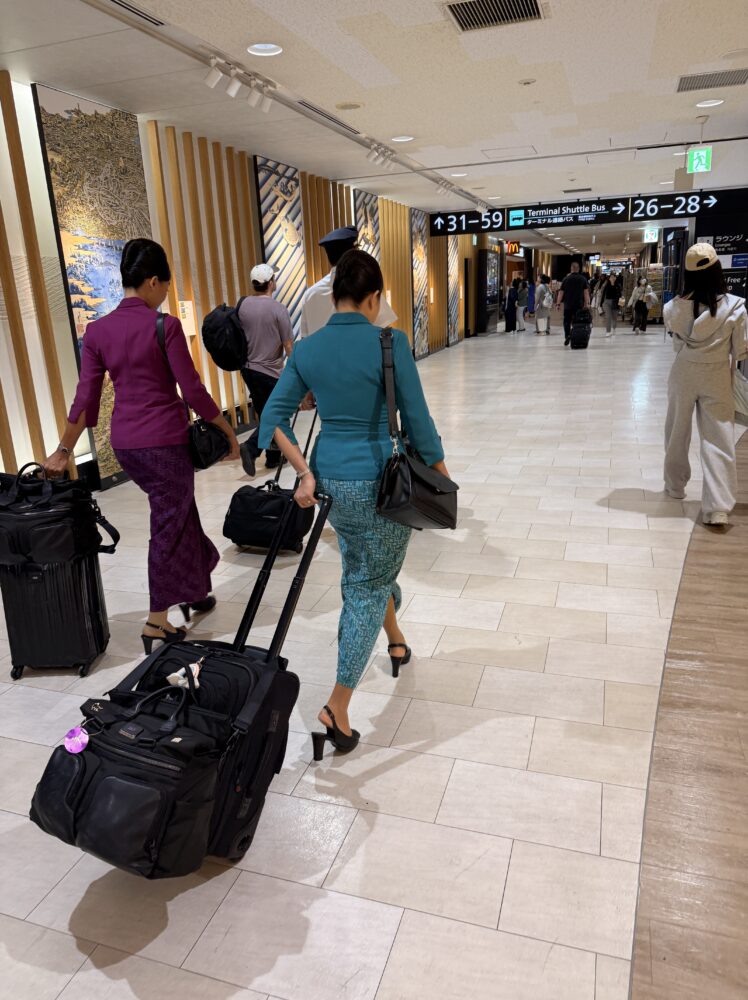 制限エリアに入ると、明るくモダンな雰囲気が広がっています。搭乗ゲートへ向かう途中、インドネシアの民族衣装を着た客室乗務員の方々とすれ違い、バリへ向かう実感がさらに高まりました。鮮やかな制服が、これから向かうインドネシアの空気を思い出させてくれます。