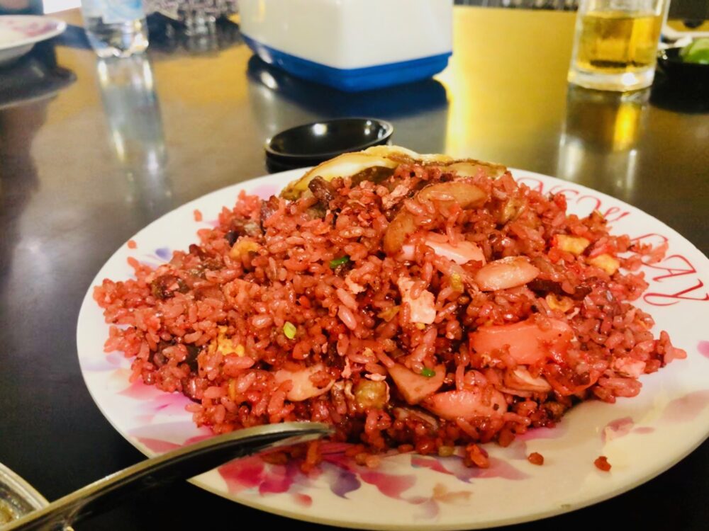 この独自の調理法こそが、“赤いチャーハン”を生み出しました。