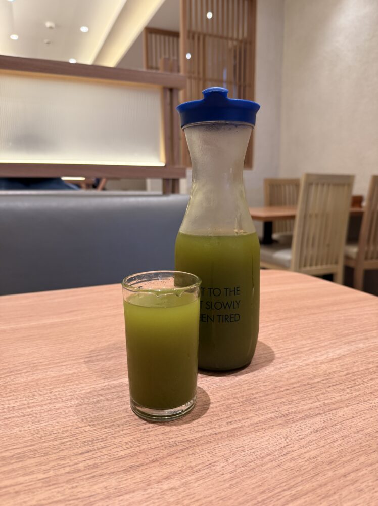 飲み物は冷たい緑茶をオーダー。たっぷり入ったガラスのボトルがテーブルに届くと、ほっと一息。香ばしくさっぱりとした緑茶の風味が、油ものの後口をすっきりと整えてくれます。インドネシアでは甘い飲み物が主流なので、無糖のお茶をたっぷり飲めるのは大きな魅力。思わず何杯もおかわりしてしまいました。