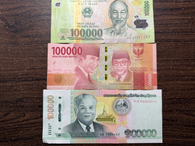 ベトナム・ドンは、3国の中で最も単位が小さい通貨です。