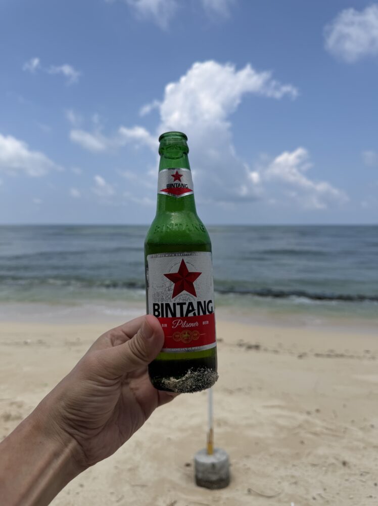 そして、ガゼボに戻り、冷えたビンタンビール。