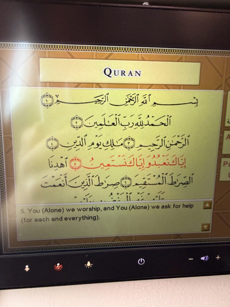 座席に着き、シートベルトを締めて待っていると、機内のモニターに流れてきたのは安全ビデオ…ではなく、まずイスラムの祈りの映像でした。