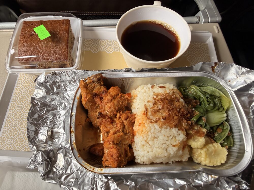 機内食 ― しっかり味のローカル料理とコーヒーの香り