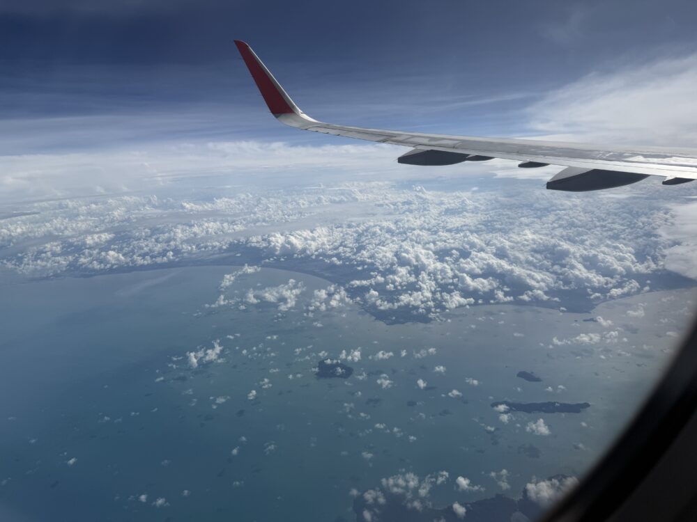 ホーチミンの出国審査で紙の搭乗券問題が発生し、焦りに焦ってスリリングな朝を迎えましたが、ベトジェットの機内は思いがけず空いており、快適な空の旅を過ごせました。窓からの眺めやエアライン独自のサービスも楽しめたのは、何とか乗り遅れずに済んだからこそ。