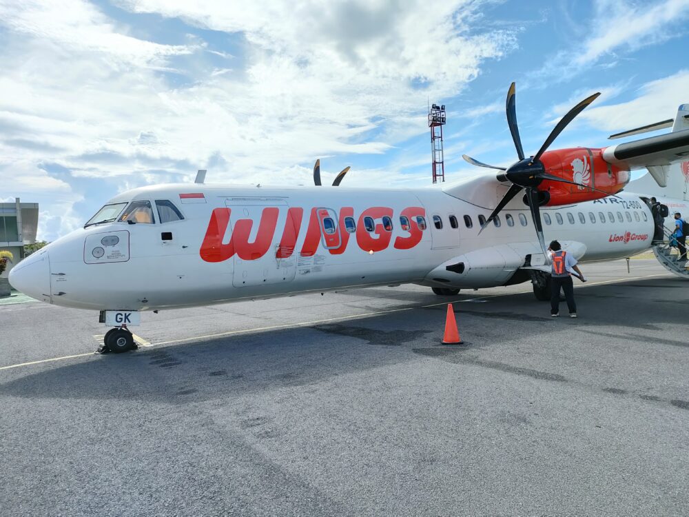 定刻でケンダリからワカトビまでウイングスエアATR72-600の機体が到着しました。この便がそのまま折り返しワカトビ発ケンダリ行きの飛行機となります。